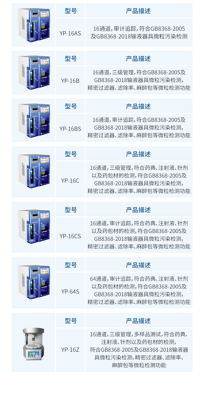 輸液器具測試專用通道(GB8368-2005):25-50um、51-100um、>100um