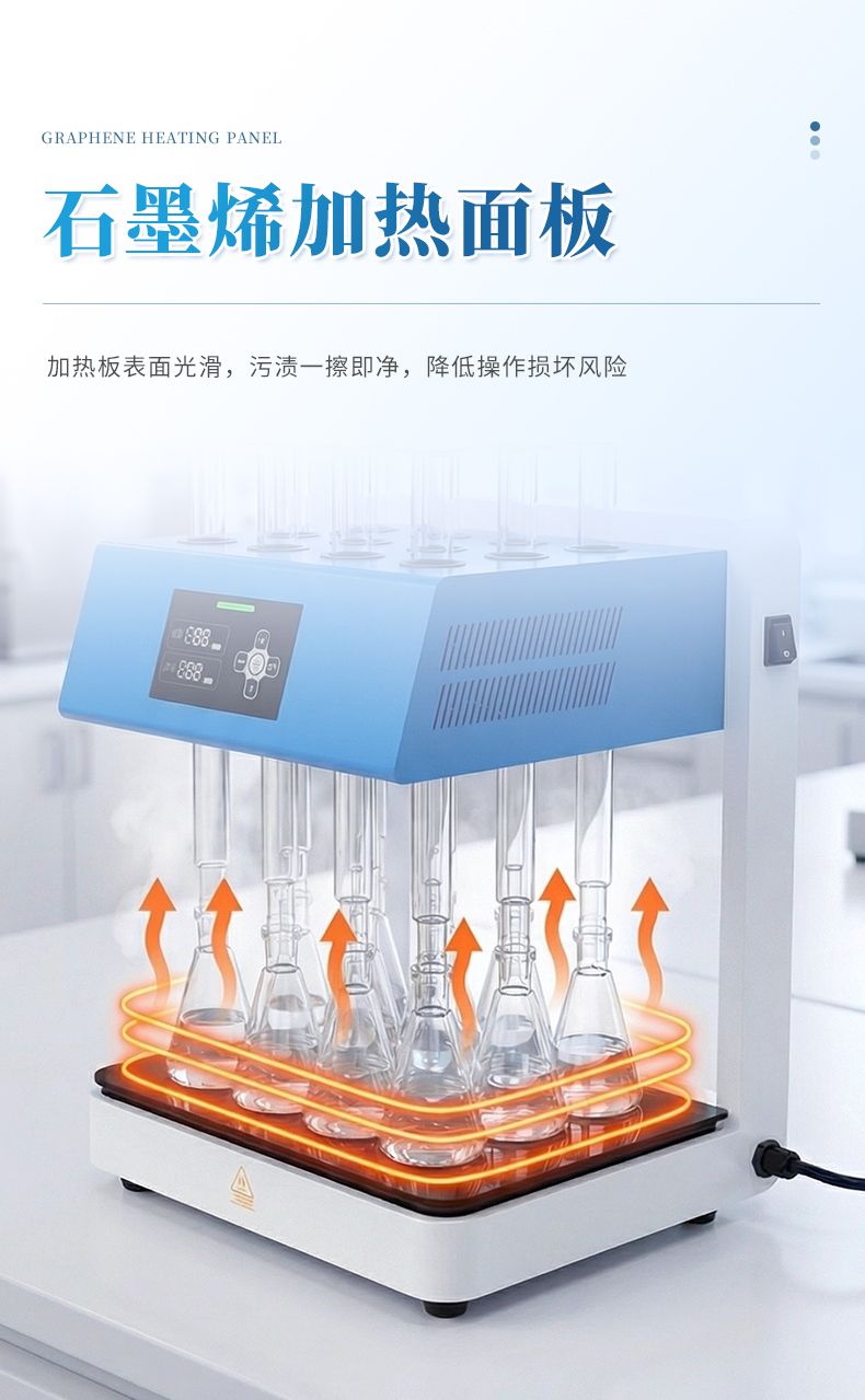 1. 獨(dú)立控溫:10個(gè)獨(dú)立通道熱源,各通道恒定加熱,互不干擾,每個(gè)加熱單元可根據(jù)水樣特性自由設(shè)置消解溫度,保障樣品達(dá)到標(biāo)準(zhǔn)要求的微沸狀態(tài);