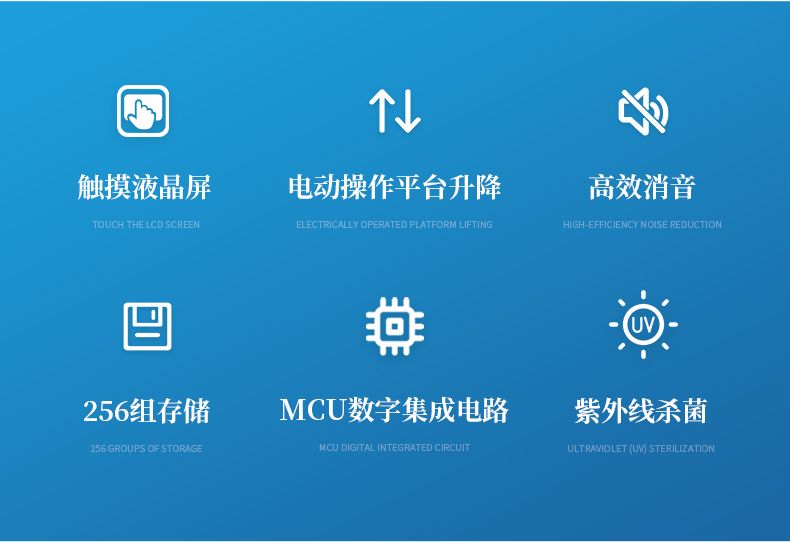 7.設(shè)備配置電動(dòng)操作平臺(tái)升降、 LED 照明系統(tǒng)、紫外殺菌功能;