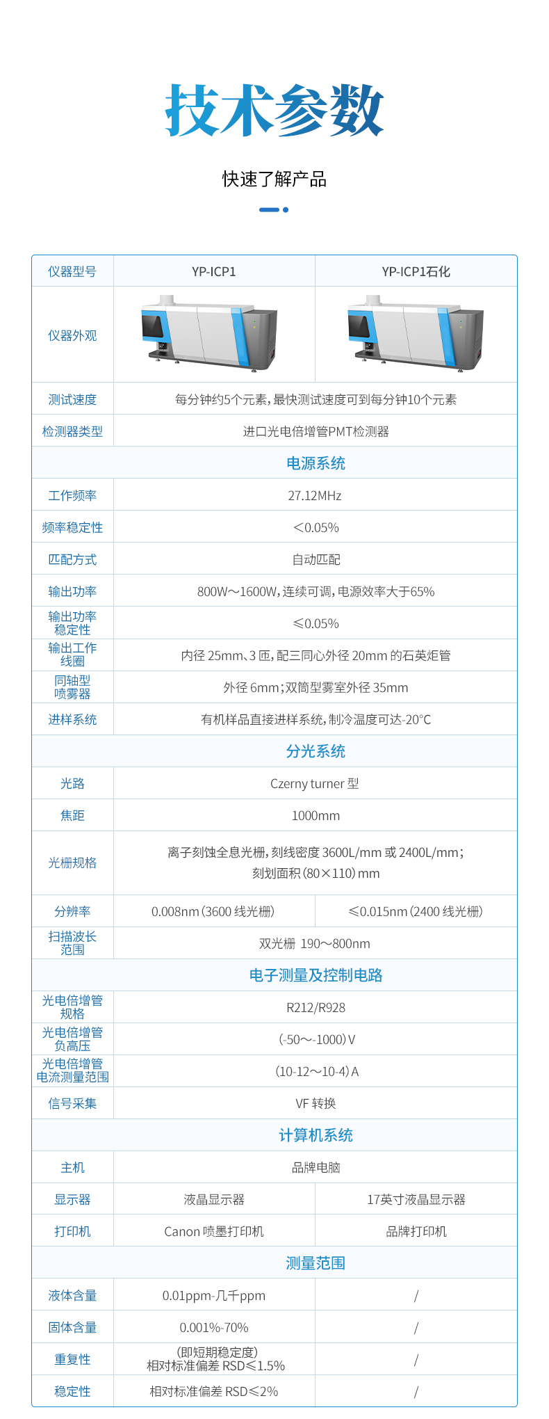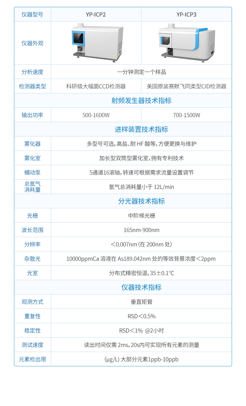 全譜直讀型電感耦合等離子體發(fā)射光譜儀是一款性能優(yōu)異的全譜直讀型 ICP 光譜儀,用于測定不同物質(zhì)中的常量、微量、痕量元素含量,可用于樣品中 元素的定性、半定量及精確定量分析,檢出限可達(dá)十億分之一。