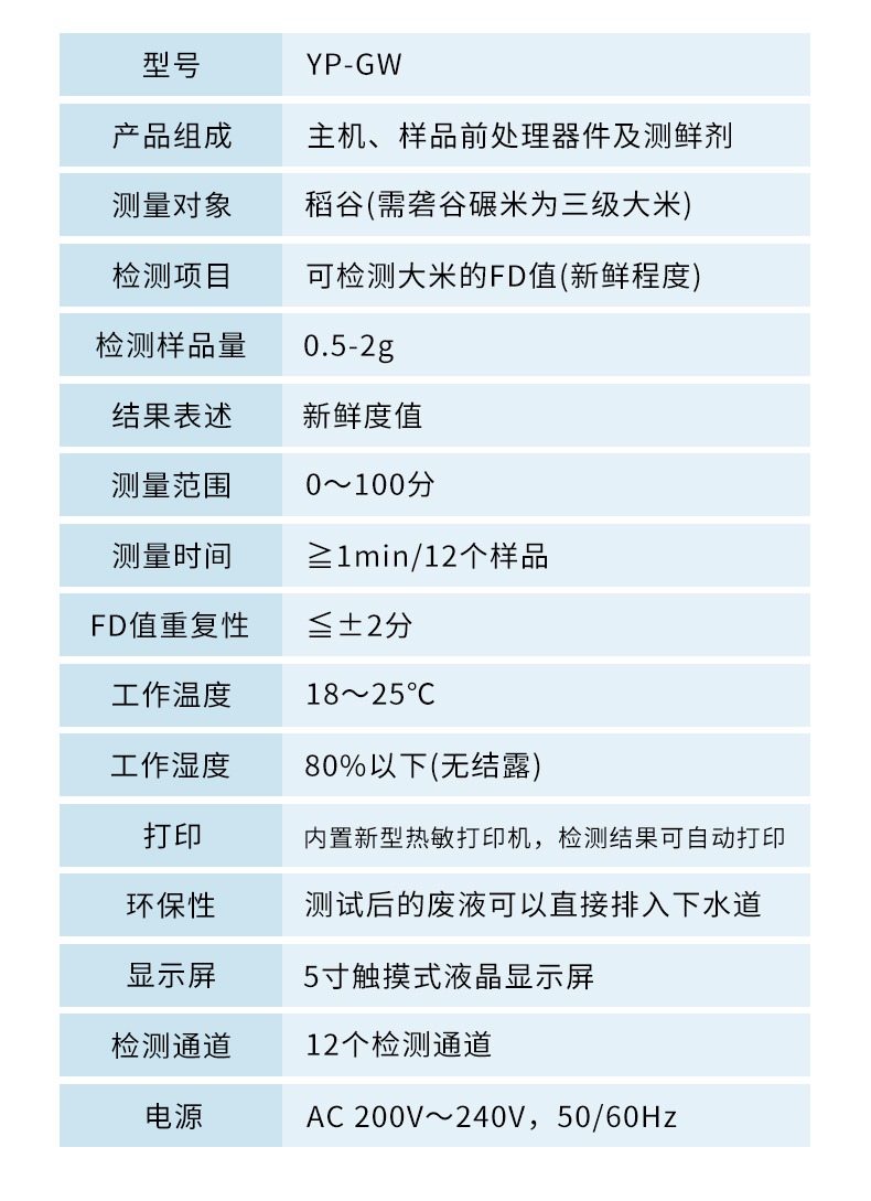 3、檢測(cè)項(xiàng)目:可檢測(cè)大米的FD值(新鮮程度);