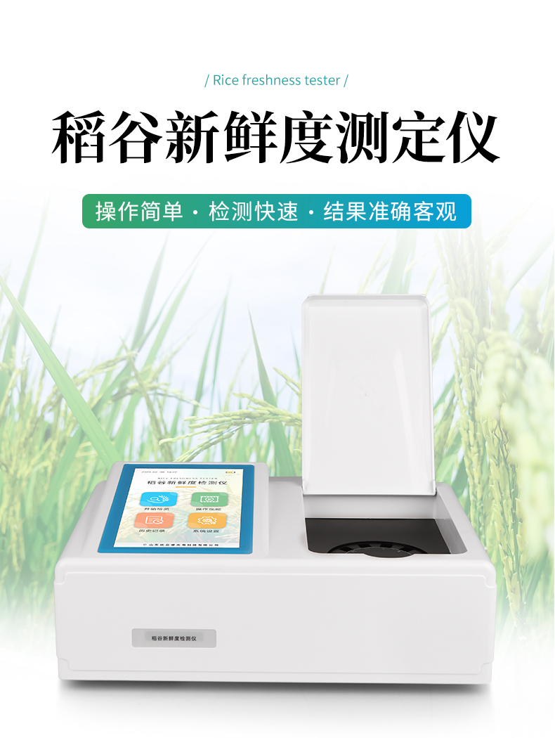 稻谷新鮮度測(cè)定儀適用于LS/T 6118—2017《糧油檢驗(yàn) 稻谷新鮮度測(cè)定與判別》糧食行業(yè)標(biāo)準(zhǔn),是檢測(cè)稻谷新鮮程度的一款專用儀器。其工作原理是依據(jù)稻谷樣品在陳化過程中產(chǎn)生的醛酮類物質(zhì)的量,將待測(cè)稻谷碾制成大米,大米試樣加入專用試劑——測(cè)鮮劑后,振蕩混合并進(jìn)行離心處理,通過檢測(cè)樣品與測(cè)鮮劑混合反應(yīng)后混合溶液的顏色變化,經(jīng)儀器檢測(cè)后顯示樣品的新鮮度值來判斷該稻谷樣品的新鮮程度。該儀器主要應(yīng)用于糧庫、大米加工企業(yè)、糧食質(zhì)檢中心等對(duì)稻谷新鮮程度的評(píng)價(jià)。