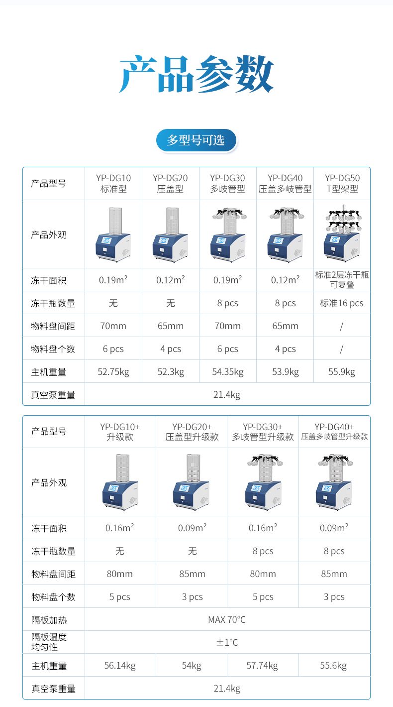 (1) 凍干面積最大0.19m2(普通型),物料盤尺寸φ200mm。支持?jǐn)U展多歧管凍干瓶、茄型瓶,進(jìn)一步增大凍干面積。(配備多歧管鐘罩)