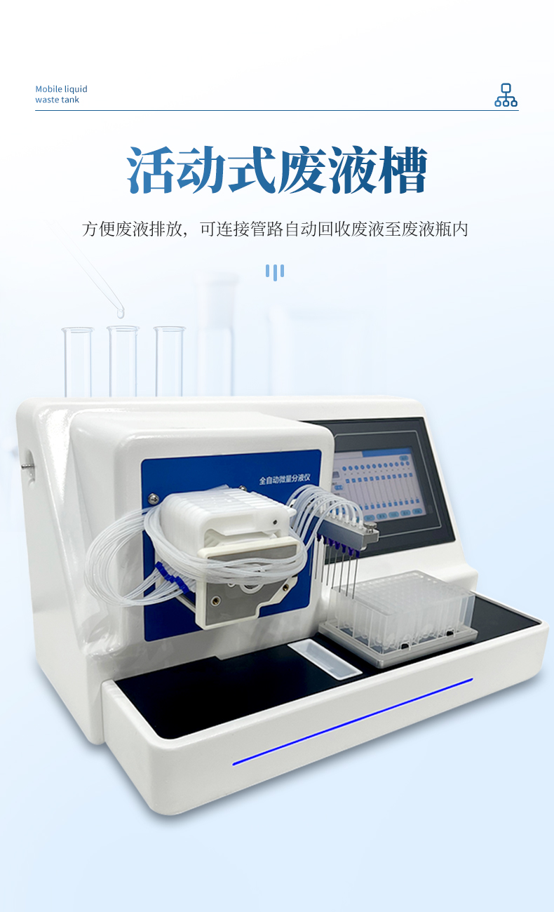 5、活動(dòng)式廢液槽,方便廢液排放,可連接管路自動(dòng)回收廢液至廢液瓶?jī)?nèi)。