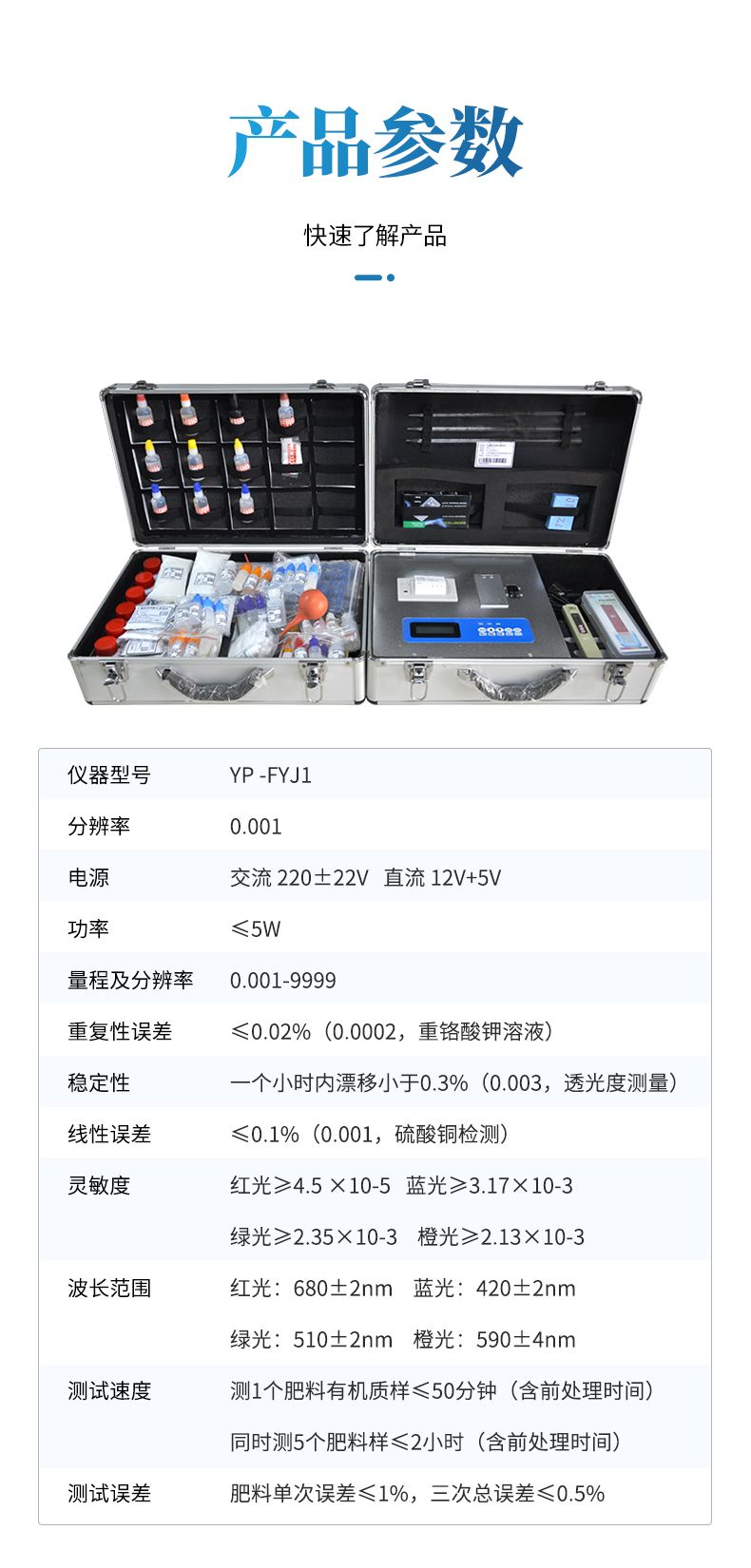 ★全國獨家《機箱/藥劑一體式鋁合金機箱》專利設(shè)計,便于攜帶、堅固耐用,配套成套附件及成品藥劑。