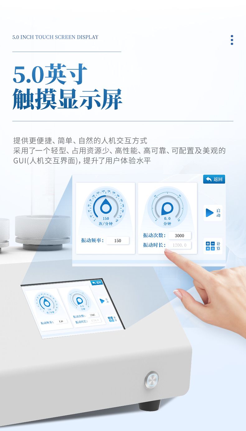 1、使用5.0寸觸摸屏,提供便捷、簡單的人機交互方式;