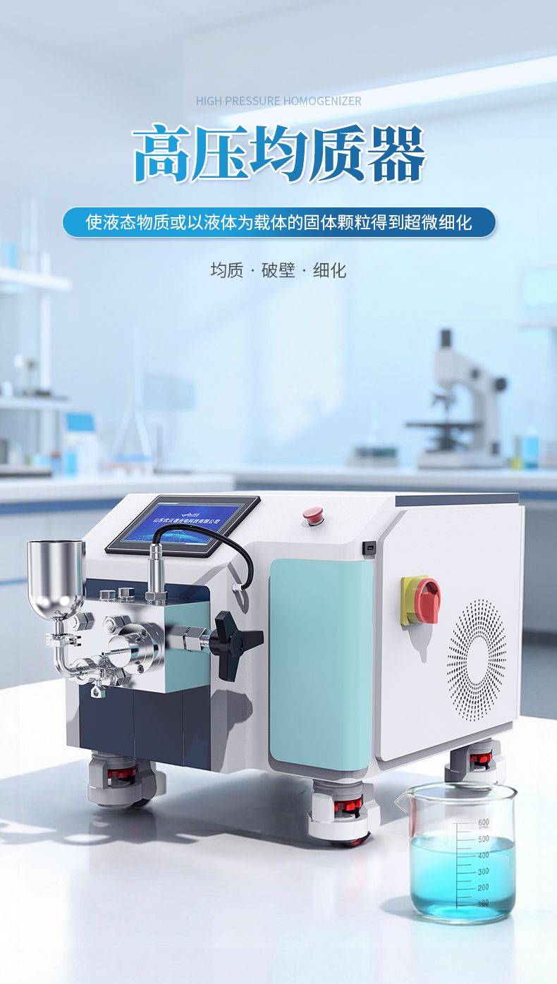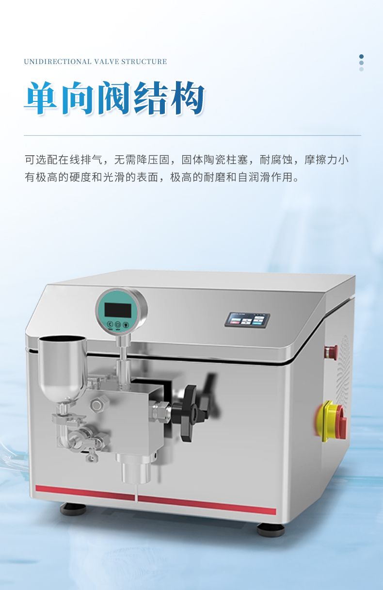 高壓均質(zhì)機(jī)是以高壓往復(fù)泵為動(dòng)力傳遞及物料輸送機(jī)構(gòu),將物料輸送至工作閥部分。物料在通過(guò)工作閥的過(guò)程中,在高壓下產(chǎn)生強(qiáng)烈的剪切、撞擊和空穴作用,從而使液態(tài)物質(zhì)或以液體為載體的固體顆粒得到超微細(xì)化。