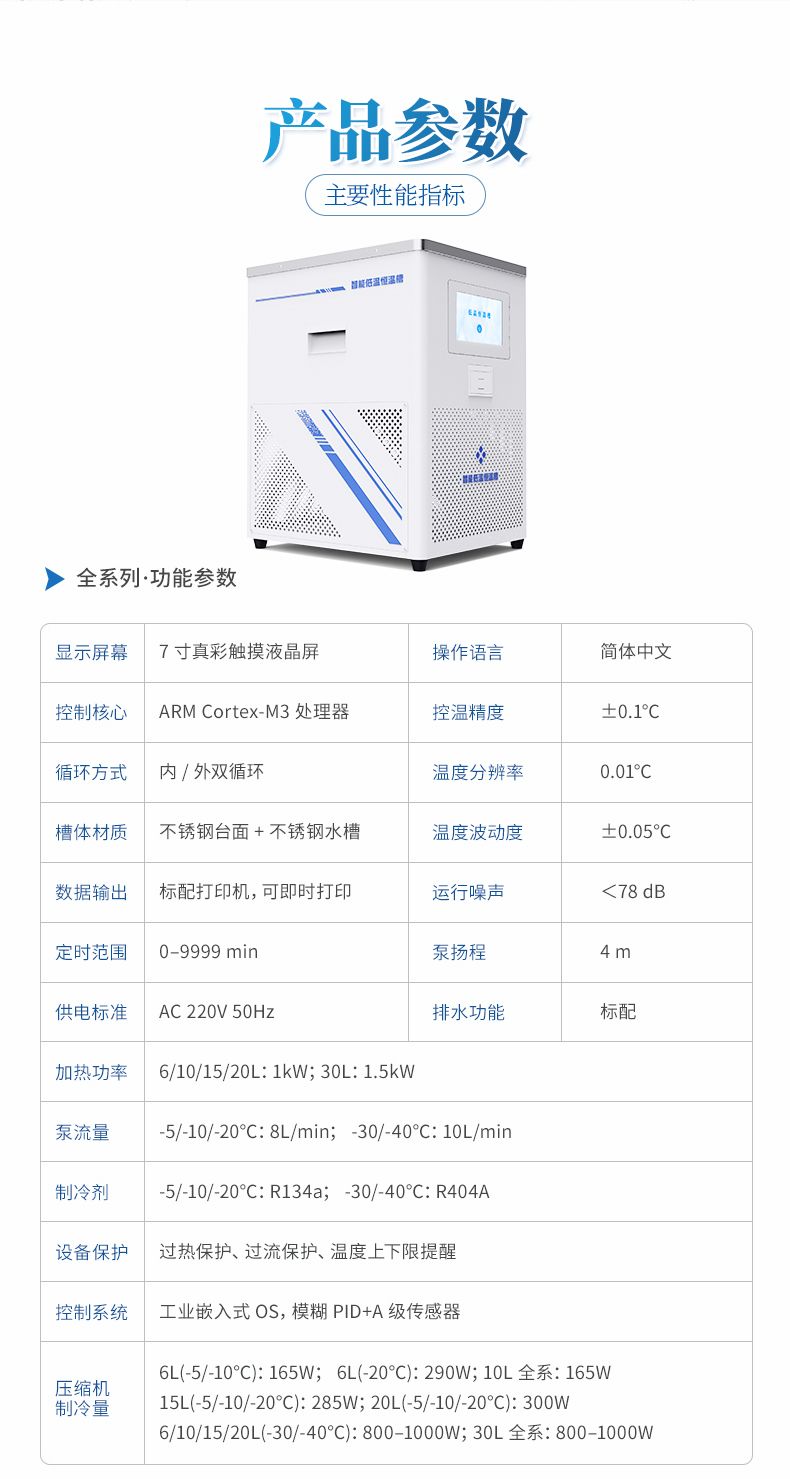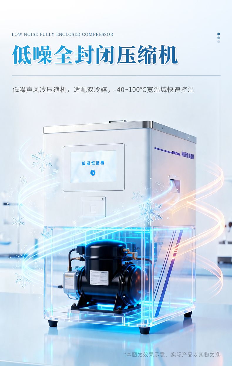 采用低噪聲全封閉壓縮機(jī)組,配合低溫制冷劑提供快速制冷控制,采用高功率加熱模塊提供加熱控制,根據(jù)目標(biāo)溫度值利用模糊推理、PID算法等實(shí)現(xiàn)恒溫控制。采用軸式攪拌裝置,同時(shí)可提供內(nèi)外循環(huán),使溫度均勻并提供第二恒溫場(chǎng)。