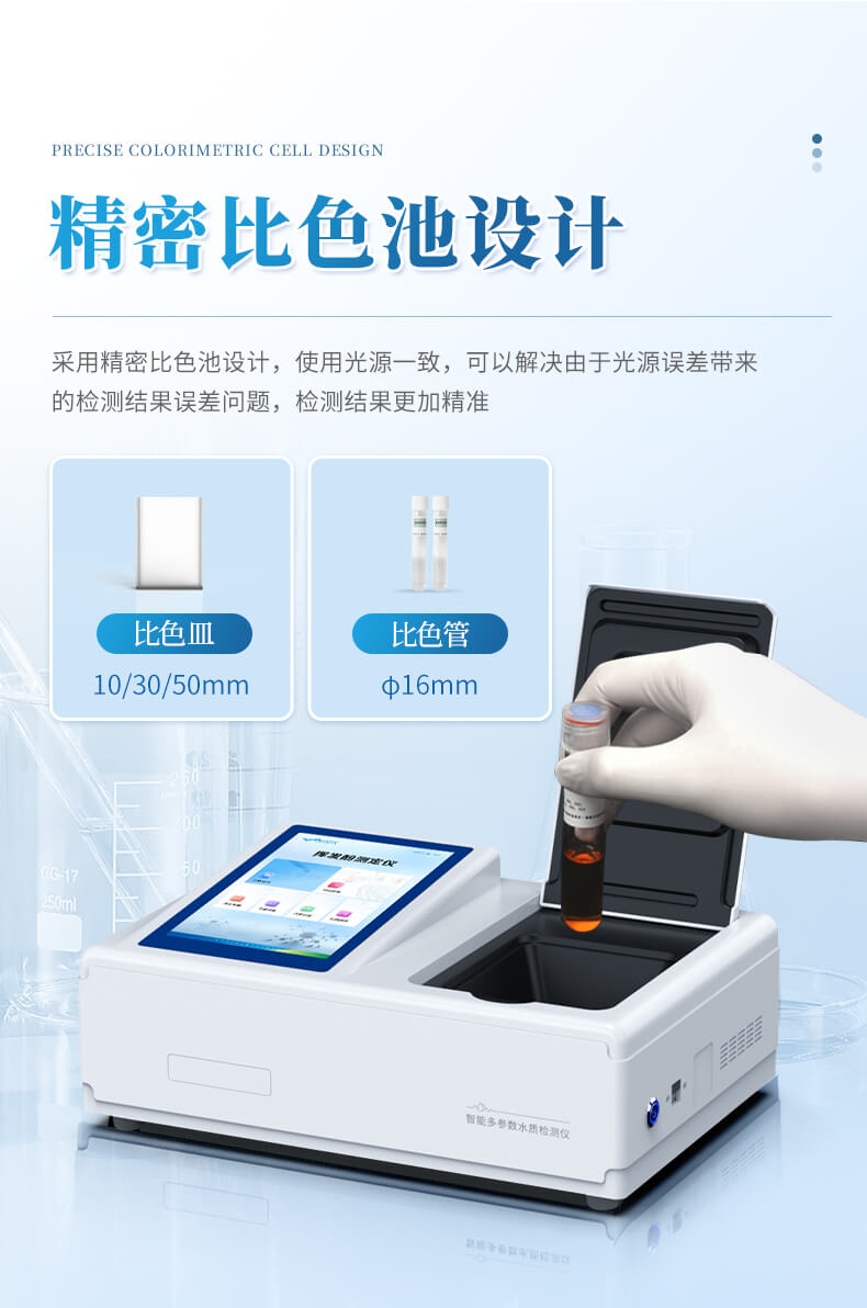 3、采用精密比色池設(shè)計(jì),使用光源一致,可以解決由于光源誤差帶來(lái)的檢測(cè)結(jié)果誤差問(wèn)題,檢測(cè)結(jié)果更加精準(zhǔn)。