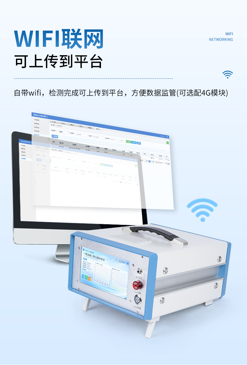 4.自帶wifi,檢測(cè)完成,可上傳到平臺(tái),方便數(shù)據(jù)監(jiān)管(可選配4G模塊)