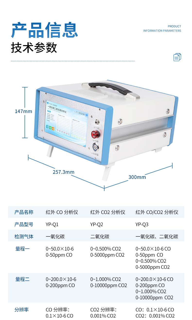 8、CO分辨率:0.1×10-6 ;