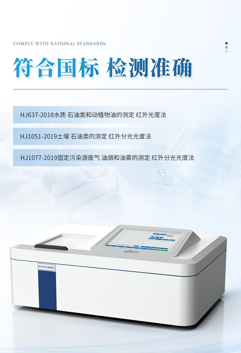 紅外分光測(cè)油儀是根據(jù)中國(guó)環(huán)境保護(hù)標(biāo)準(zhǔn)《HJ637-2018水質(zhì)石油類和動(dòng)植物油的測(cè)定 紅外分光光度法》、《HJ1051-2019土壤石油類的測(cè)定 紅外分光光度法》、《HJ1077-2019固定污染源廢氣 油煙和油霧的測(cè)定 紅外分光光度法》進(jìn)行研發(fā)制造,該儀器主要檢測(cè)地表水、地下水、工業(yè)廢水、土壤、固定污染源廢氣、油煙和油霧中含油量測(cè)定的專用紅外光譜分析儀器。
