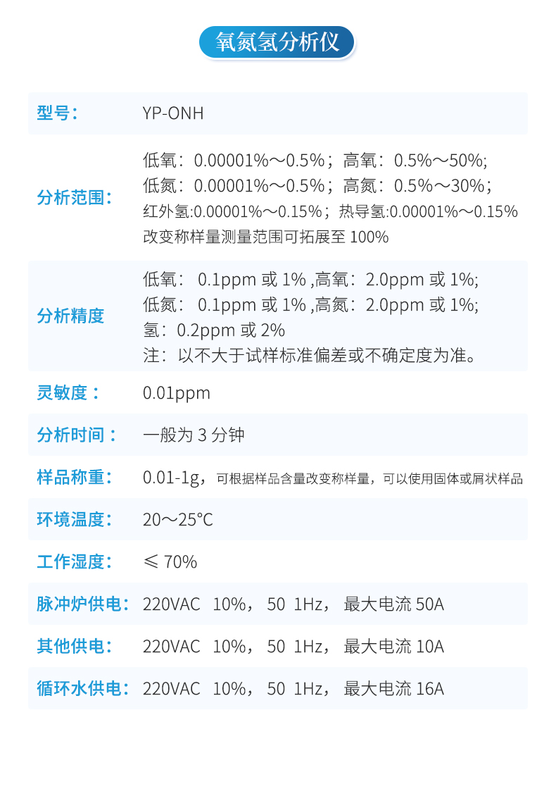 1、氧分析采用非色散紅外檢測系統(tǒng);氮分析采用高精度熱導檢測系統(tǒng);氫分析采用非色散紅外檢測系統(tǒng)或者高精度熱導檢測系統(tǒng)。