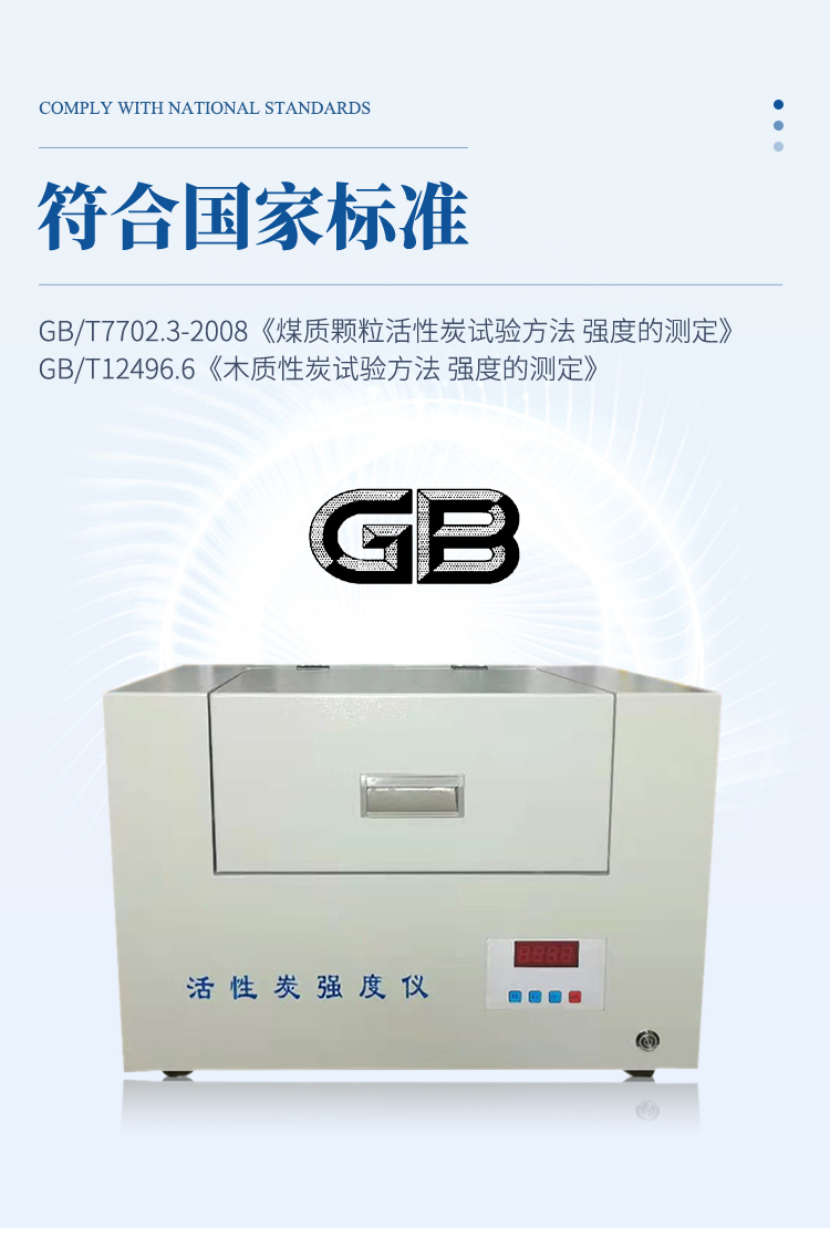 活性炭強(qiáng)度測(cè)定儀是按照GB/T7702.3-2008《煤質(zhì)顆?;钚蕴吭囼?yàn)方法 強(qiáng)度的測(cè)定》和GBT12496.6《木質(zhì)性炭試驗(yàn)方法 強(qiáng)度的測(cè)定》開(kāi)發(fā)設(shè)計(jì),適用于煤質(zhì)顆?;钚蕴繌?qiáng)度的測(cè)定和木質(zhì)活性炭強(qiáng)度的測(cè)定。