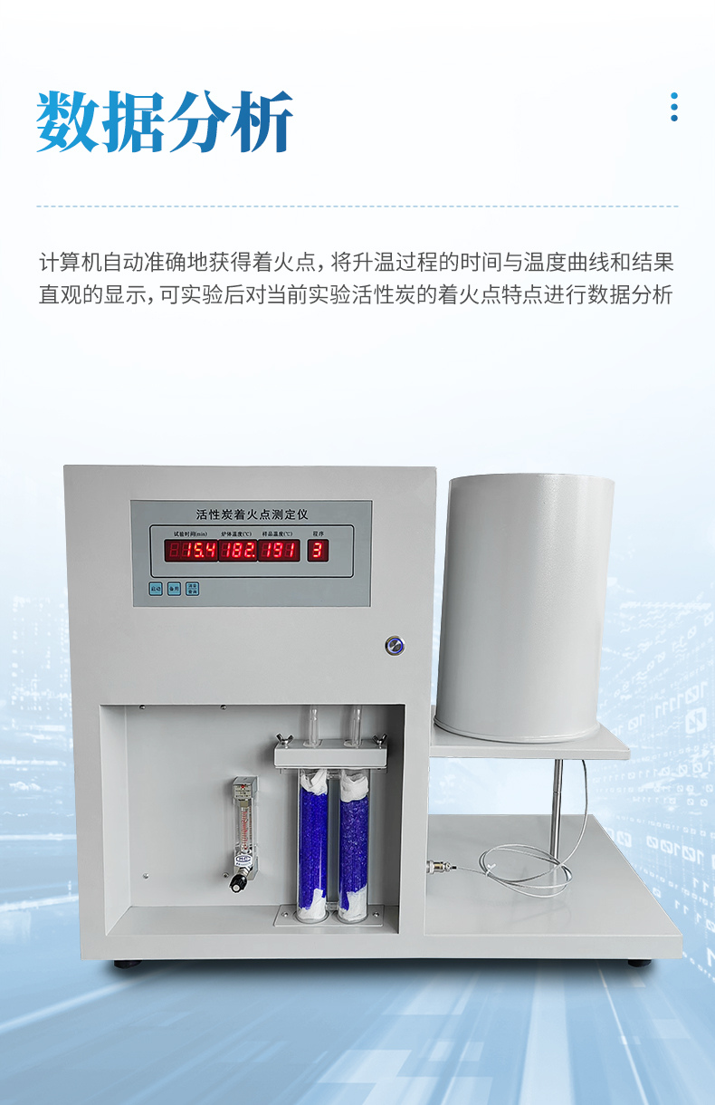 全自動(dòng)活性炭著火點(diǎn)是我公司最新研發(fā)的新一代全自動(dòng)計(jì)算機(jī)控制活性炭著火點(diǎn)的測定儀器,具有計(jì)算機(jī)軟件界面清晰,表現(xiàn)全面,操作簡單的特點(diǎn),符合“GBT7702.9煤質(zhì)顆粒活性炭試驗(yàn)方法-著火點(diǎn)的測定”國標(biāo)要求?;钚蕴恐瘘c(diǎn)測定儀軟件自帶數(shù)據(jù)庫功能,實(shí)驗(yàn)過程自動(dòng)記錄各個(gè)時(shí)間點(diǎn)相對應(yīng)的溫度點(diǎn),使用者可實(shí)驗(yàn)后對當(dāng)前實(shí)驗(yàn)活性炭的著火點(diǎn)特點(diǎn)進(jìn)行數(shù)據(jù)分析。