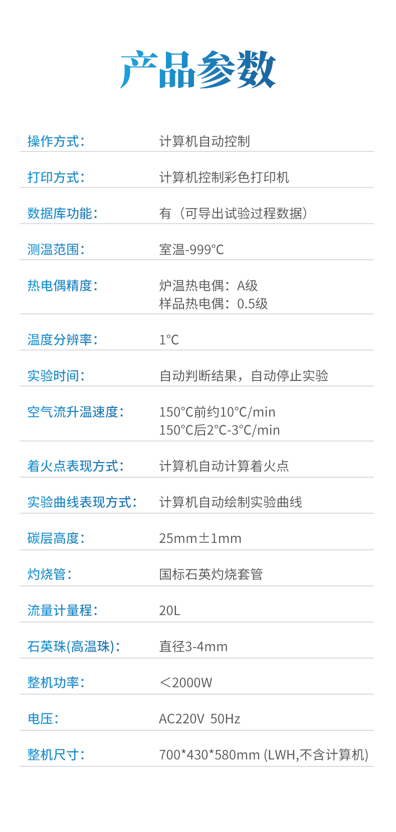 工作方法是計(jì)算機(jī)自動(dòng)控制和描述顆?;钚蕴坑诹鲃?dòng)空氣中的參考著火點(diǎn)的測定。計(jì)算機(jī)自動(dòng)準(zhǔn)確地獲得著火點(diǎn),將升溫過程的時(shí)間與溫度曲線和結(jié)果直觀的顯示出并通過彩色打印機(jī)打印出曲線和實(shí)驗(yàn)結(jié)果,本機(jī)可無上限保存所有實(shí)驗(yàn)數(shù)據(jù)。