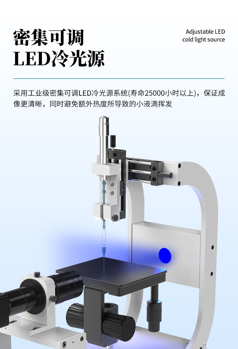 2. 采用工業(yè)級密集可調(diào) LED 冷光源系統(tǒng)(壽命25000H 以上) ,保證成像更清晰 , 同 時避免額外熱度所導(dǎo)致的小液滴揮發(fā);