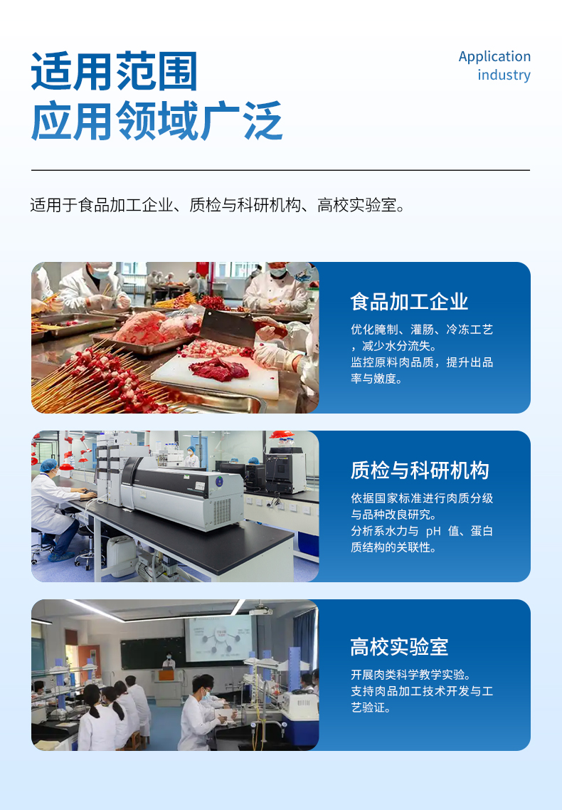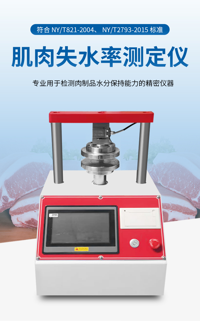 肌肉系水力的高低,取決于宰后肌肉的 PH。國內(nèi)通常采用加壓重量法來度量肌 肉失水率,以估計(jì)肌肉的系水力,即失水率越高,系水力越低。系水力(%)=(壓前肉樣重-壓后肉樣重)一壓前肉樣重 x100%。系水力:指肌肉蛋白質(zhì)在外力作用 下保持水分的能力采用貯存損失 熟肉率及失水率測定肌肉的系水力。應(yīng)用于食品包裝廠家、質(zhì)檢、商檢、大學(xué)、 科研等部門。