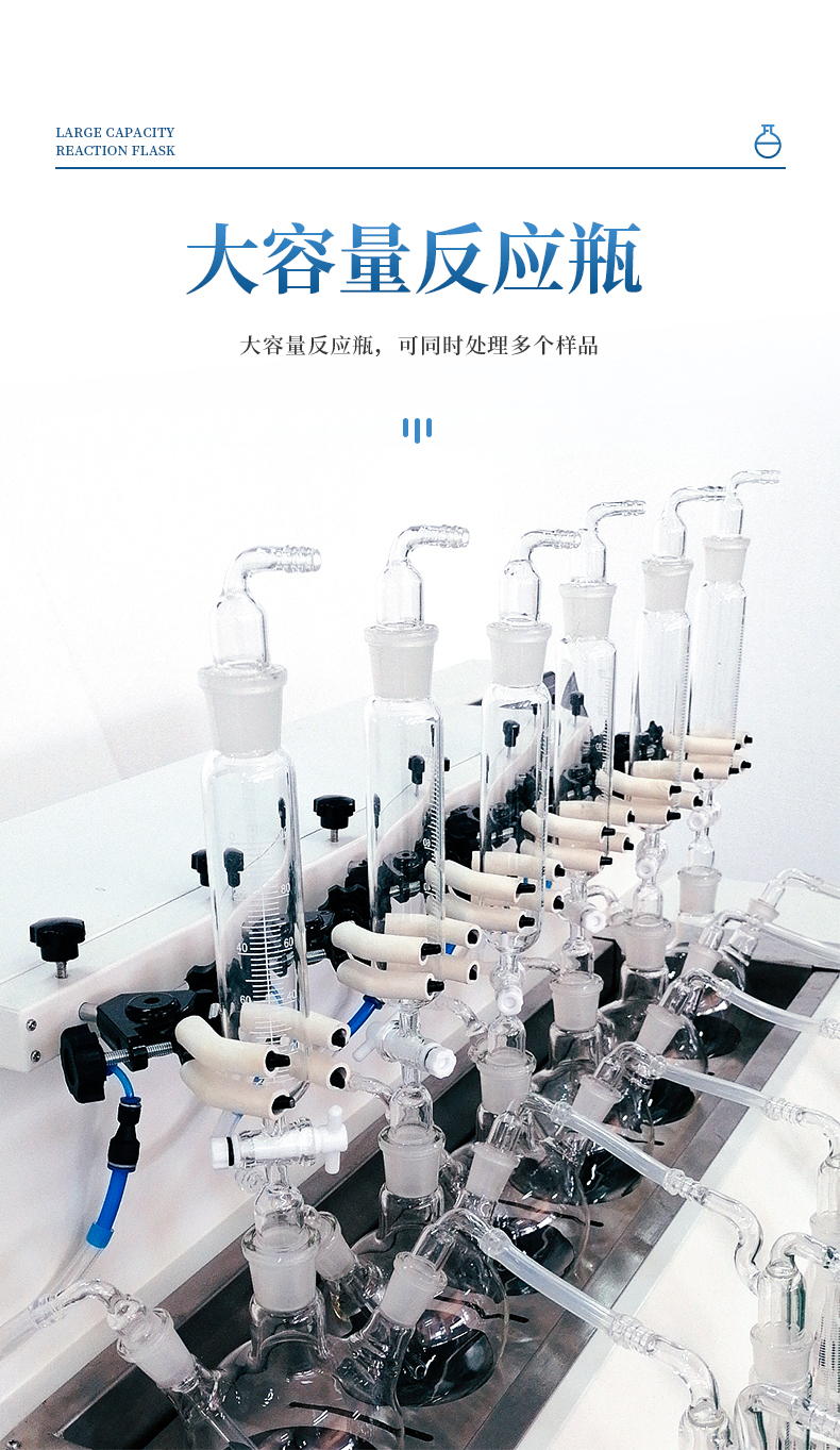 1、大容量反應(yīng)瓶,可同時處理多個樣品。