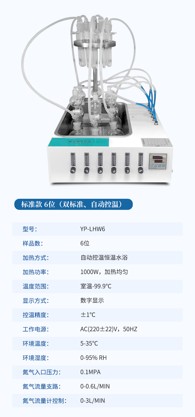 5、每個樣品的氮氣流量獨立控制調(diào)節(jié)或關(guān)閉,針閥氣體流量計準(zhǔn)確控制和顯示氣體總消耗量。