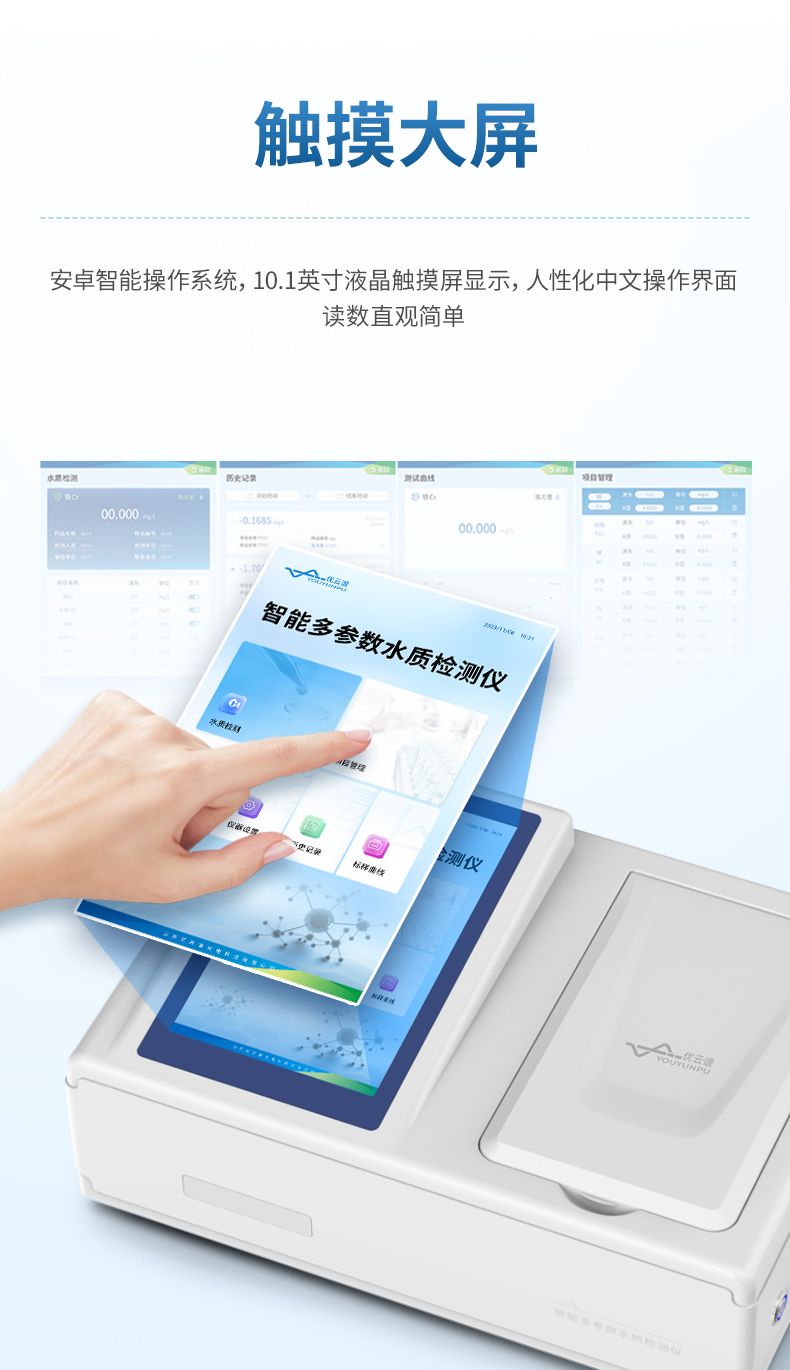 本儀器主要檢測水中硫酸鹽含量指標,兼具智能數(shù)據(jù)分析功能,圖表、列表顯示數(shù)據(jù),分析一目了然;高清晰度彩色液晶觸摸顯示屏,Android智能操作系統(tǒng),中文顯示界面,中英文鍵盤,人性化操作,使用更簡單。