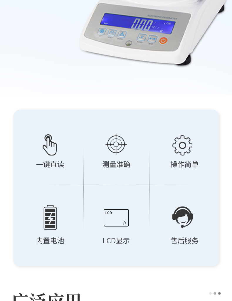 5.具有密度上、下限功能,可判定待測物的比重合格與否。設有蜂鳴器裝置