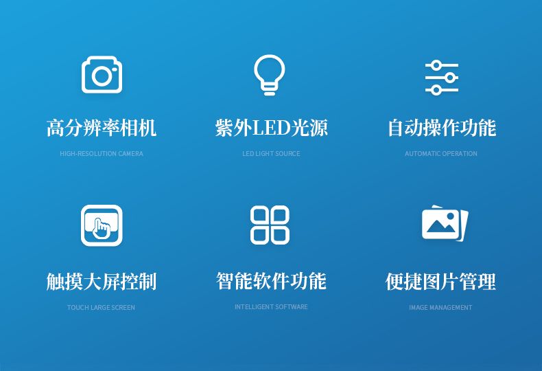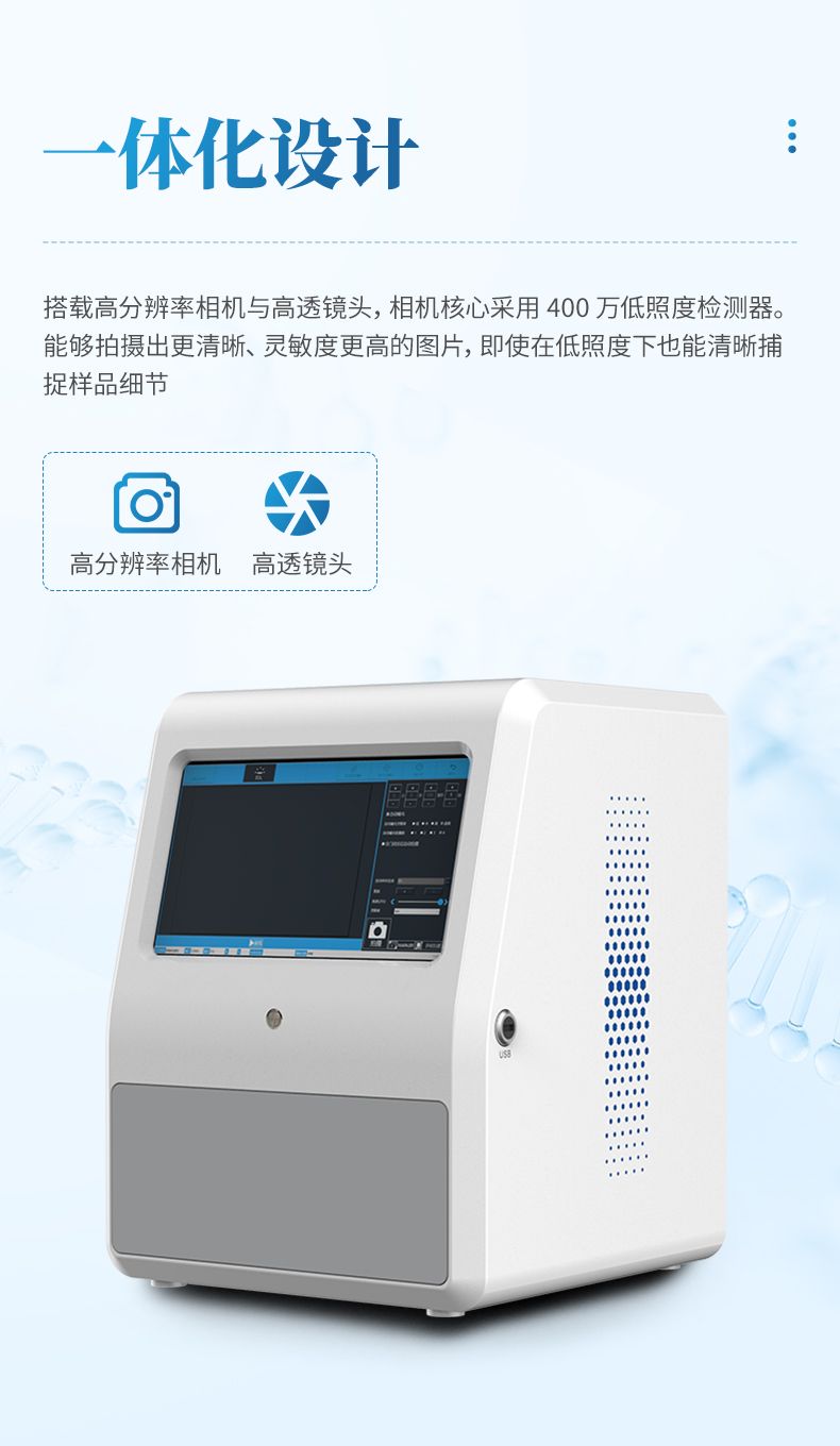 采用 13.3 寸觸摸屏控制,內(nèi)存 16G,256G 固態(tài)硬盤,使儀器具有更強大圖像計算及 處理能力,配合圖像采集軟件操作簡捷直觀,軟件具有自動采集信號,并進行自己處理合 成功能;曝光模式分為自動曝光、手動曝光、以及自動定義曝光功能。配合圖像分析軟件 可對圖像信號進行定性定量分析。
