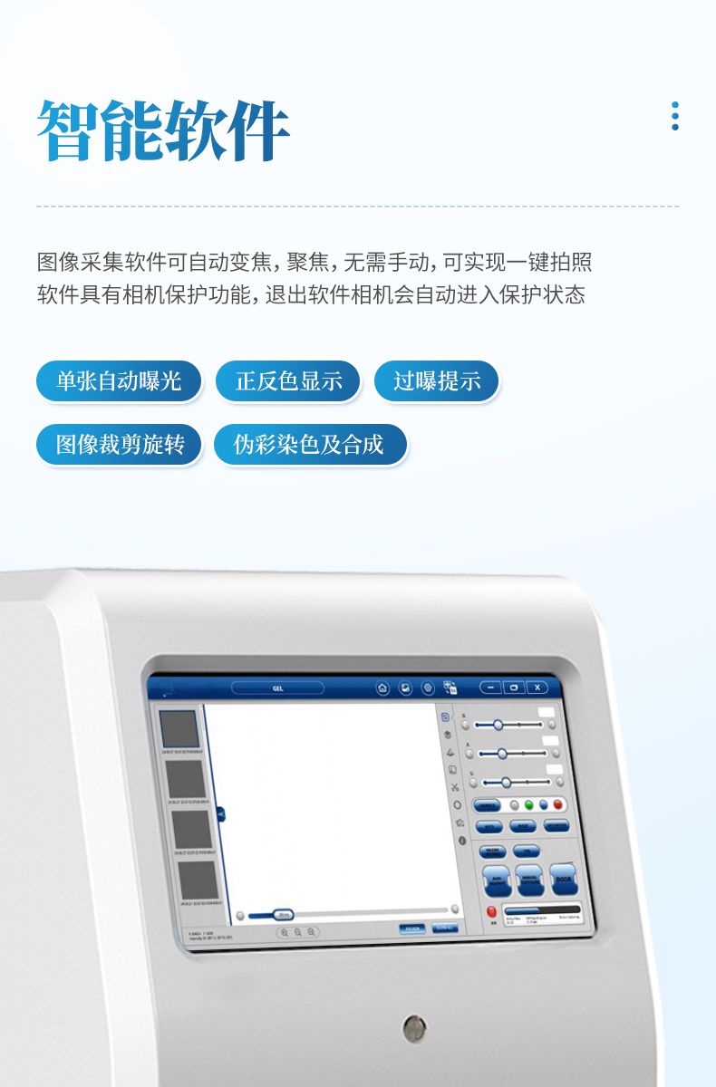 圖像采集軟件具有單張自動曝光功能,根據(jù)樣品發(fā)光強度自動選擇合適的曝光 時間。