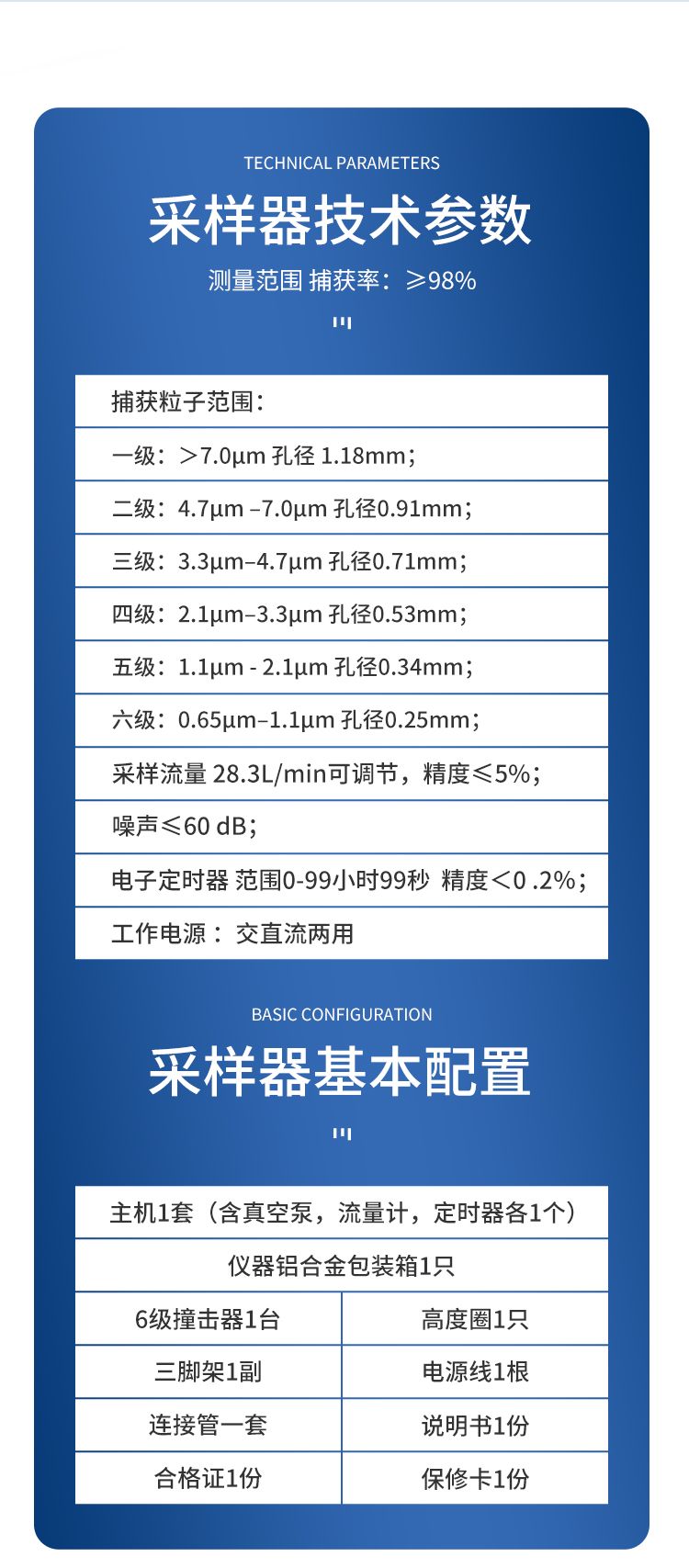 采樣流量 28.3L/min可調(diào)節(jié),精度≤5%;