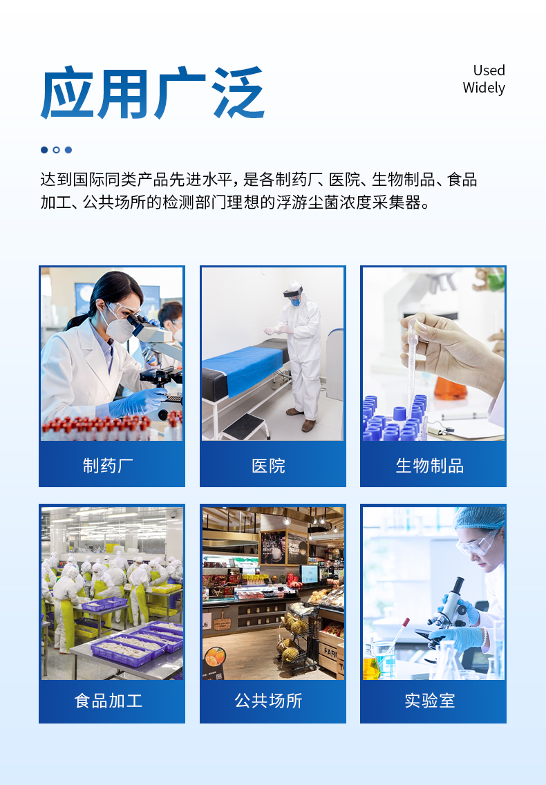 采樣時,帶塵菌空氣高速通過微孔,被撞擊在培養(yǎng)皿內(nèi)的瓊脂表面;采集完成后把瓊脂培養(yǎng)皿蓋好,這些活體微生物在培養(yǎng)過程中,發(fā)生動能再水化過程,高速生長,從而更快得出結(jié)果。