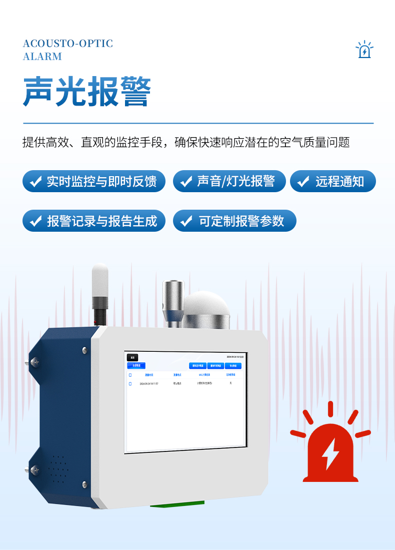 1、聲光報警:通過設(shè)置報警參數(shù)實現(xiàn)顆粒數(shù)的聲光報警。