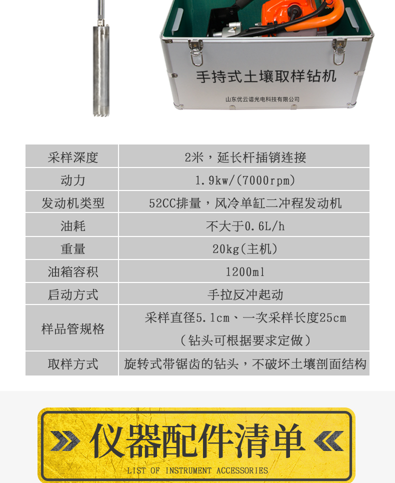 采樣深度:2米,延長桿插銷連接。