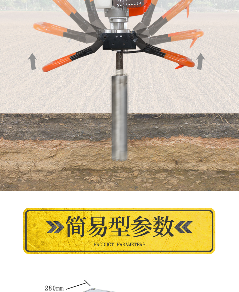 3、鉆頭帶有鋸齒,通過沖擊錘鉆入土壤,入土容易。