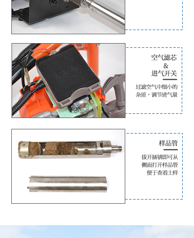 動力(汽油)土壤采樣器(汽油動力土鉆)土壤采樣器是本廠汲取廣大客戶意見、經(jīng)多方用戶需求和市場調(diào)研,開發(fā)出的一款動力(汽油)土壤采樣器。儀器采用汽油機驅(qū)動、以大幅減免土壤取樣人員的勞動力和快速、取樣簡便而著稱。