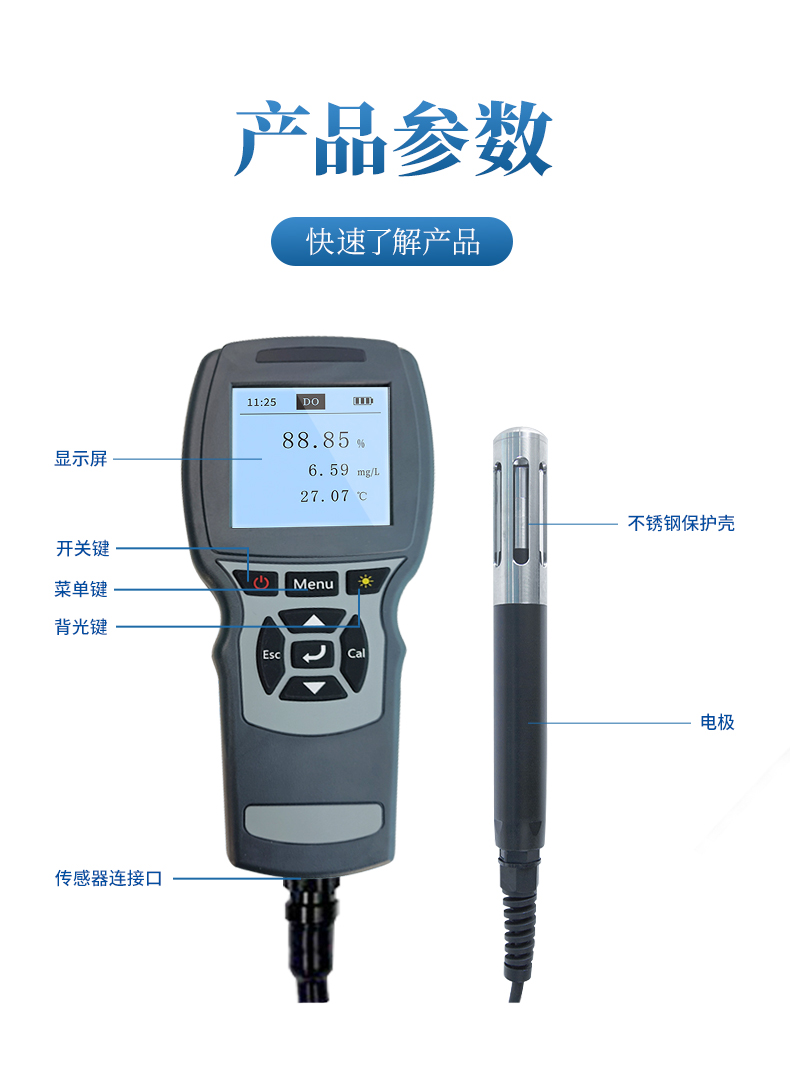 2. 內(nèi)置氣壓傳感器,可對溶解氧自動補償