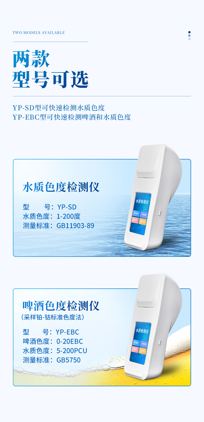 啤酒色度測定儀采用鉑-鈷標(biāo)準(zhǔn)色度法,用于測定溶解狀態(tài)的物質(zhì)所產(chǎn)生的顏色,儀器采用國家標(biāo)準(zhǔn)GB5750中所規(guī)定的鉑-鈷色度標(biāo)準(zhǔn)溶液進行標(biāo)定,采用鉑-鈷色度作為計量單位。