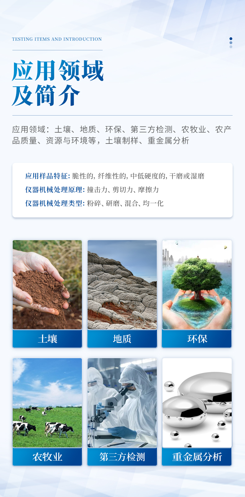 應(yīng)用領(lǐng)域:土壤、地質(zhì)、環(huán)保、第三方檢測(cè)、農(nóng)牧業(yè)、農(nóng)產(chǎn)品質(zhì)量、資源與環(huán)境等,土壤制樣、重金屬分析