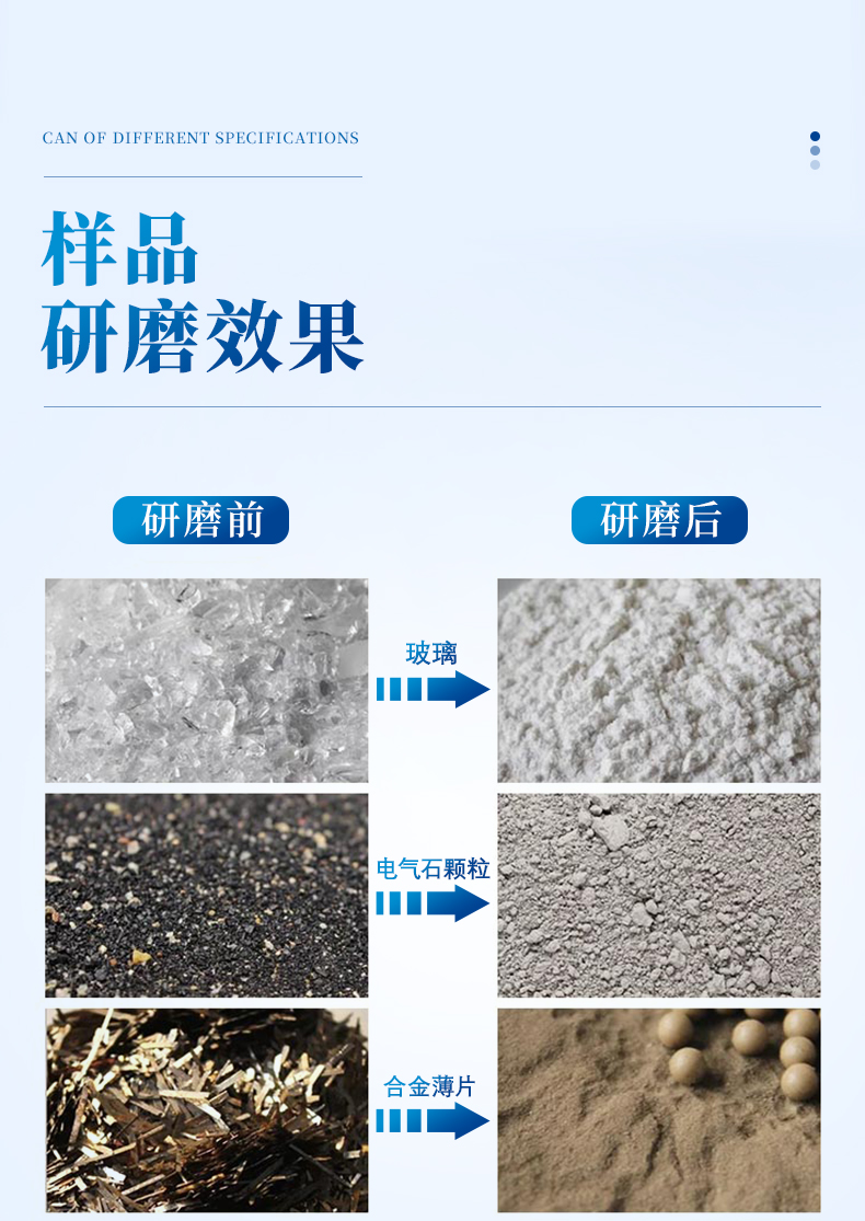 研磨球直徑:3、5、10、15、20mm(根據(jù)實(shí)際需求配置)
