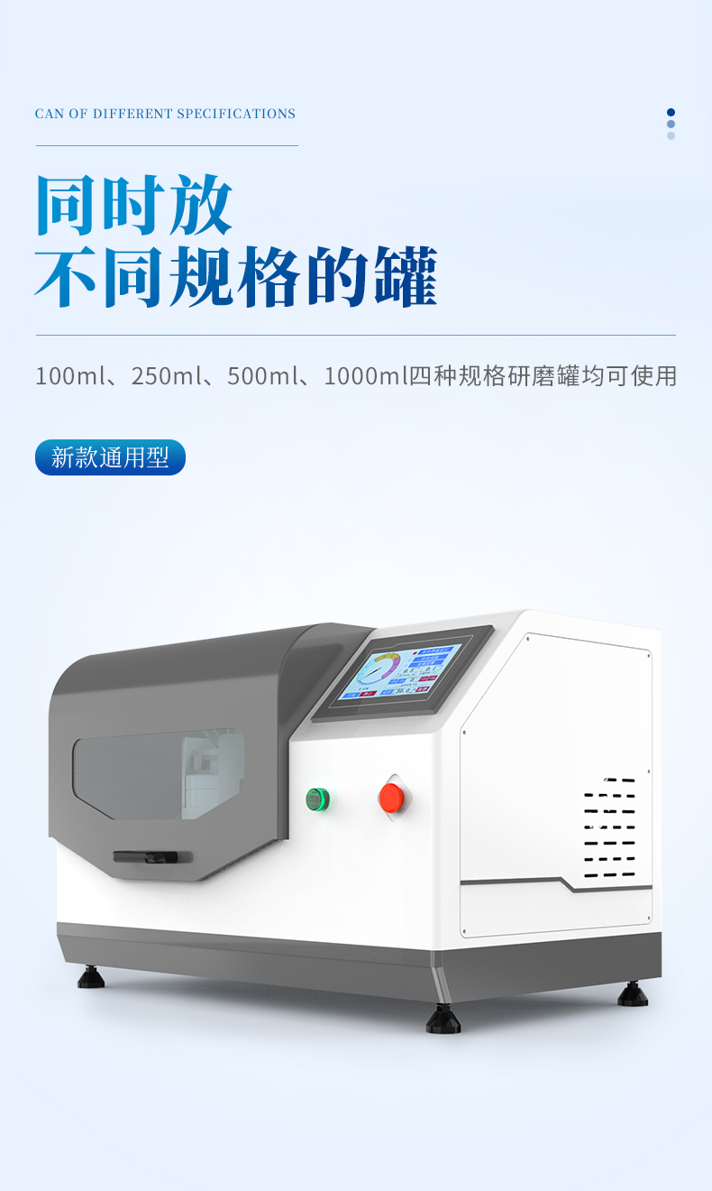 適用研磨罐:本機(jī)是新款通用型,50ml、100ml、250ml、500ml、1000ml、2000ml六種規(guī)格研磨罐均可使用,可根據(jù)客戶(hù)需求同時(shí)放不同規(guī)格的罐;對(duì)角對(duì)稱(chēng)即可(4個(gè)研磨罐為一套)。