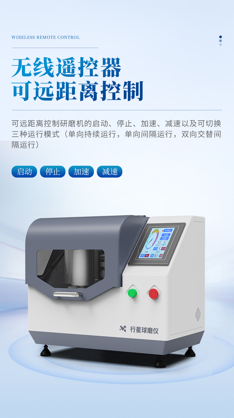 遠(yuǎn)程遙控:標(biāo)配無(wú)線(xiàn)遙控器,可遠(yuǎn)距離控制研磨機(jī)的啟動(dòng)、停止、加速、減速以及可切換三種運(yùn)行模式(單向持續(xù)運(yùn)行,單向間隔運(yùn)行,雙向交替間隔運(yùn)行)