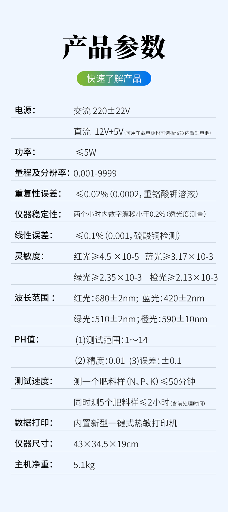 肥料養(yǎng)分專用檢測儀功能全:測試項目國內(nèi)外最全(各類藥劑均可選購)。