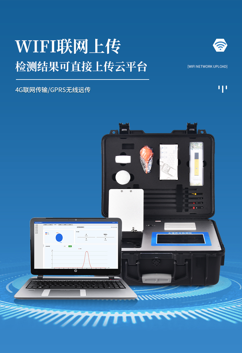 6、儀器標(biāo)配wifi無(wú)線上傳、4G聯(lián)網(wǎng)傳輸、GPRS無(wú)線遠(yuǎn)傳功能,快速上傳數(shù)據(jù)。