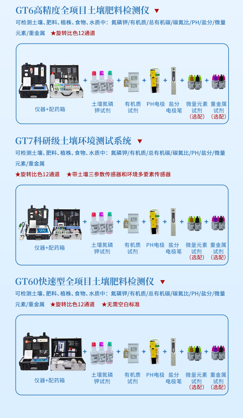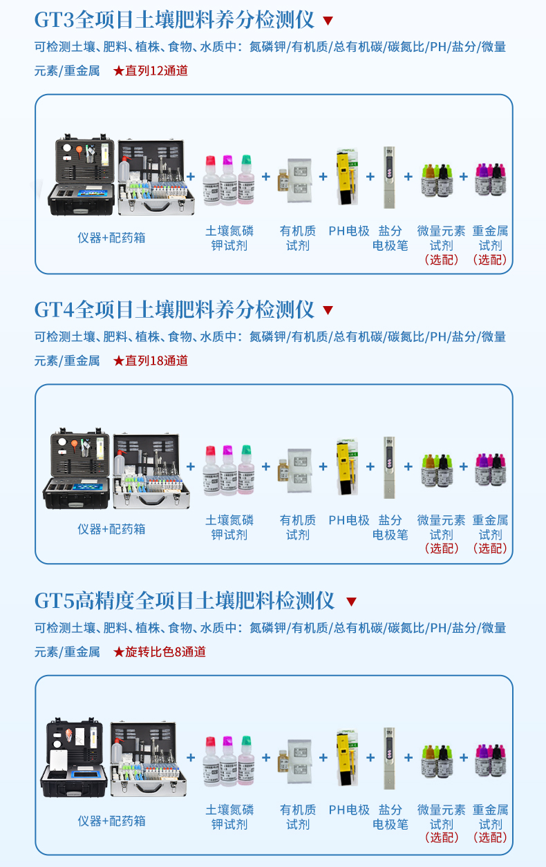 2 | PH計(jì) | 1支 | 2 | 氮磷鉀有機(jī)質(zhì)試劑 | 1套 |