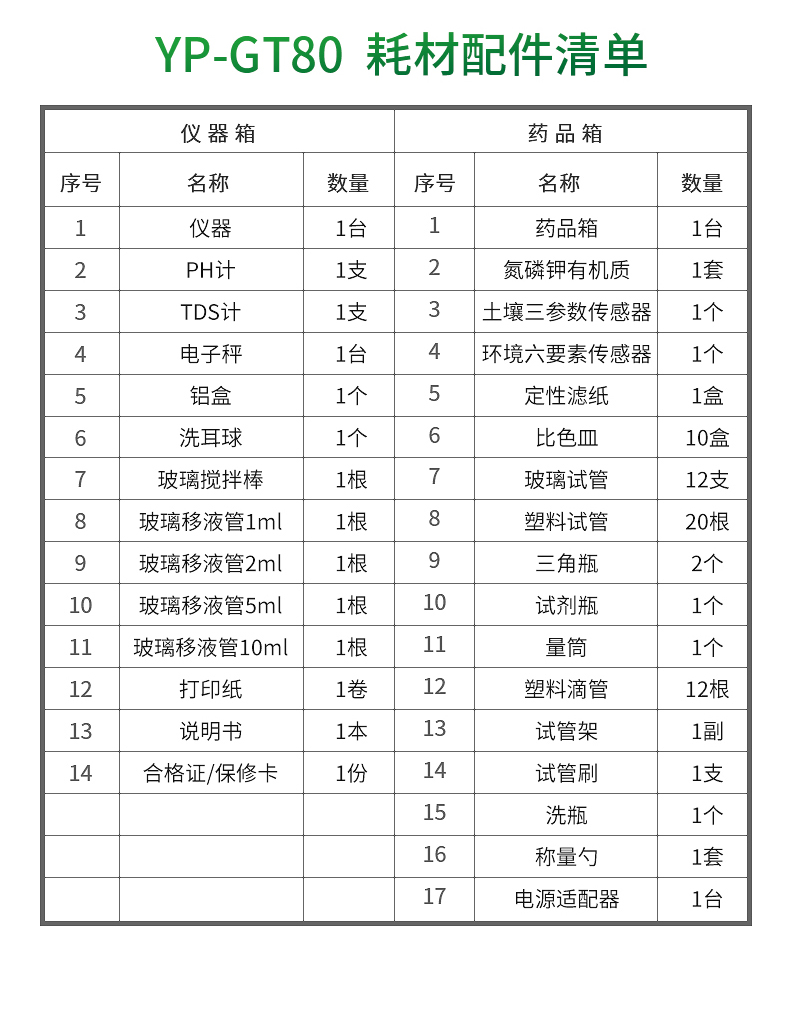 PH計 | 支 | 1 | 氮磷鉀有機質(zhì)試劑 | 套 | 1 |