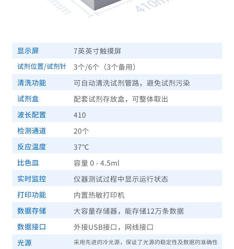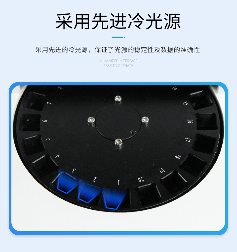 4.采用先進(jìn)的冷光源,保證了光源的穩(wěn)定性及數(shù)據(jù)的準(zhǔn)確性