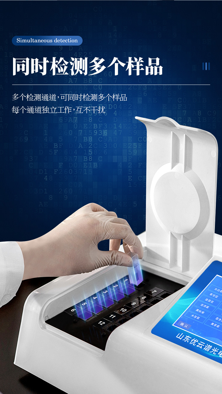 4、檢測通道:20個檢測通道,可以同時測試多個樣品,循環(huán)檢測,即放即檢,每個樣品由程序控制分別獨立工作,不會互相干擾。