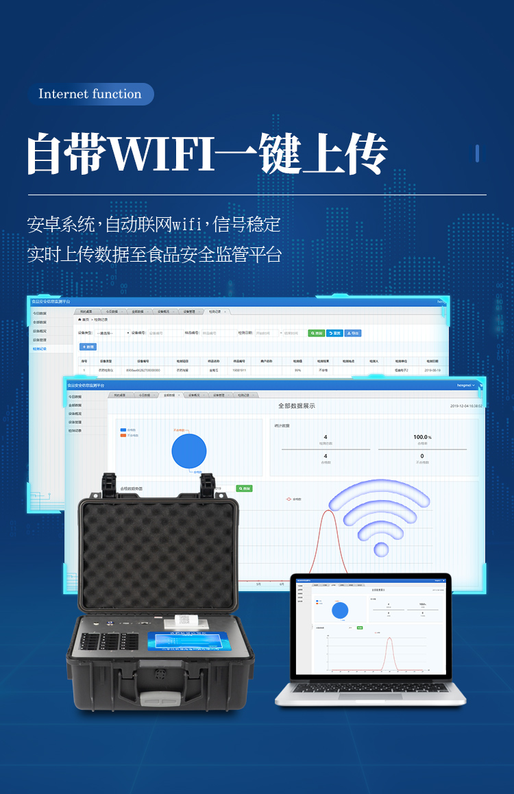 6、儀器具有wifi聯(lián)網(wǎng)功能,可將數(shù)據(jù)快速上傳電腦,進(jìn)行數(shù)據(jù)管理與統(tǒng)計(jì),4G信號(hào)GPRS遠(yuǎn)傳功能,可插手機(jī)卡實(shí)現(xiàn)數(shù)據(jù)遠(yuǎn)傳平臺(tái),。