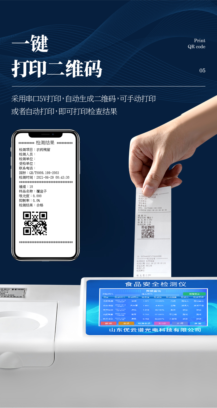 5、配備新一代嵌入式熱敏打印機(jī),可選擇手動打印或者自動打印,檢測完成可自動打印檢測報告和二維碼。