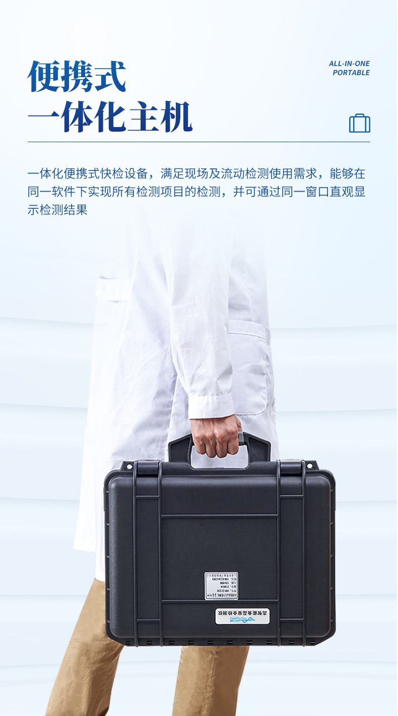 6、一體化便攜式快檢設(shè)備,滿足現(xiàn)場及流動檢測使用需求,能夠在同一軟件下實現(xiàn)所有檢測項目的檢測,并可通過同一窗口直觀顯示檢測結(jié)果。