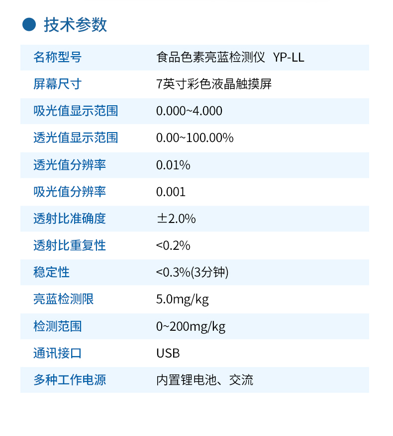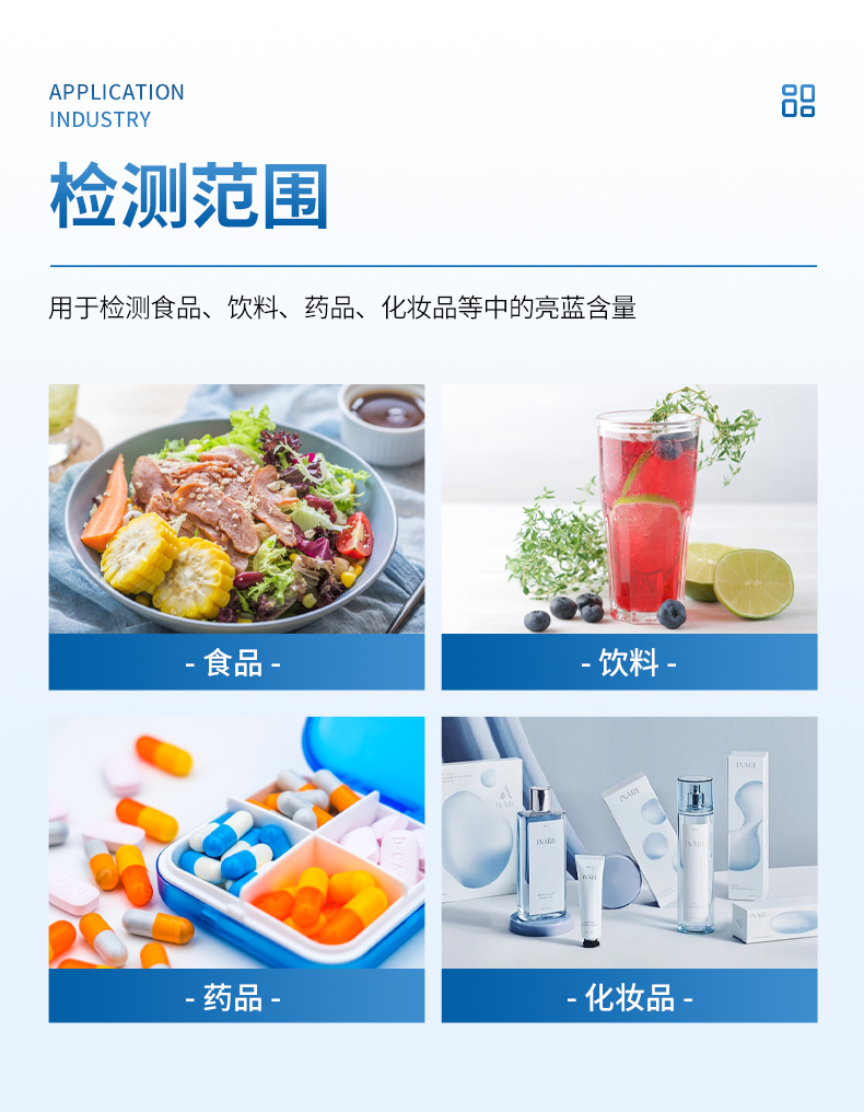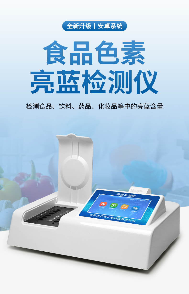 亮藍檢測儀,主要用于檢測食品、飲料、藥品、化妝品等中的亮藍含量,?具有操作簡單的特點。亮藍,又稱為誘惑藍,是一種常用的合成食品著色劑,廣泛應(yīng)用于食品、飲料和藥品中。通過亮藍檢測儀的檢測結(jié)果,可以看出這些產(chǎn)品中的亮藍含量是否符合國家和國際標準,從而保障其安全性和合規(guī)性? 。